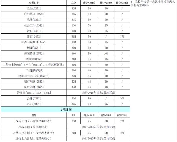 重慶大學(xué)2018年碩士研究生招生考試初試合格基本分?jǐn)?shù)線