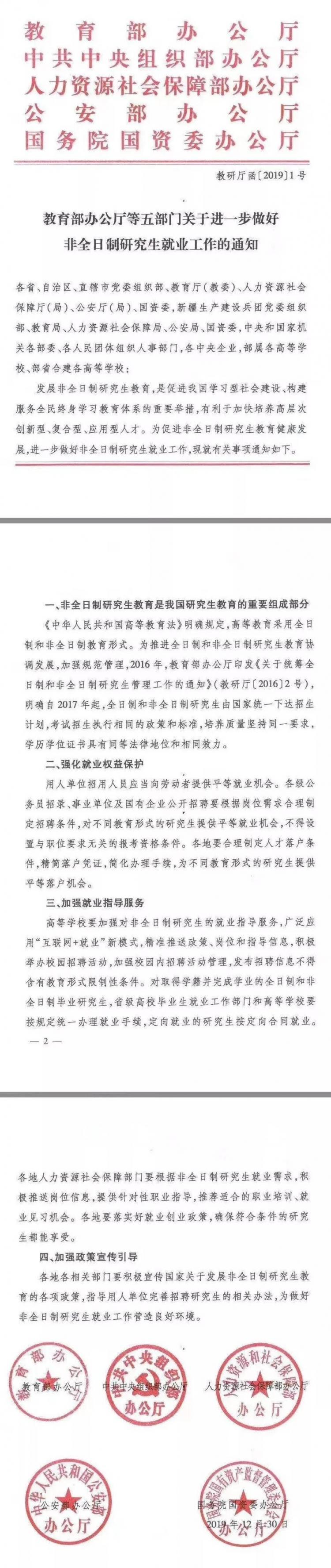 現(xiàn)在是非常時期,各部門工作都收到了影響,此時五部門聯(lián)合下發(fā)重磅文件,可以認(rèn)為是國家層面對非全日制研究生獲取公平就業(yè)機會的最好支持。