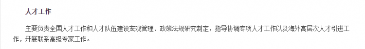 人力資源社會保障部是統(tǒng)籌機關(guān)企事業(yè)單位人員管理和統(tǒng)籌城鄉(xiāng)就業(yè)和社會保障政策的中國國家權(quán)力機構(gòu)。具體職責(zé)太多,第一調(diào)劑網(wǎng)小編還是放涉及到人才的截圖。